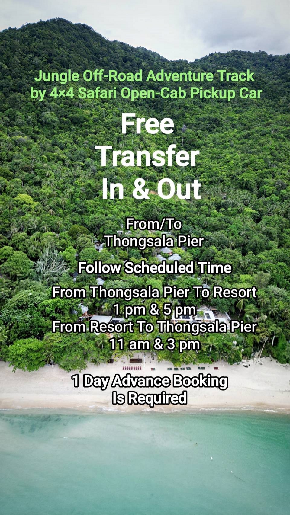 An exclusive island retreat where raw adventure meets tranquility. Enjoy free scheduled transfer in & out by 4x4 safari off-road jungle journey, the island’s rarest road adventure. Peaceful weekdays, lively weekends with Eden & Bamboo parties. Discover the untouched beauty of Haad Yuan Beach. Book your adventure retreat today and feel the thrill, peace, and charm of Haad Yuan.